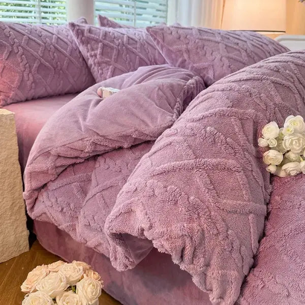 Milk Fleece Quilt Set: Thickened Warm Winter Duvet Cover for Double Bed